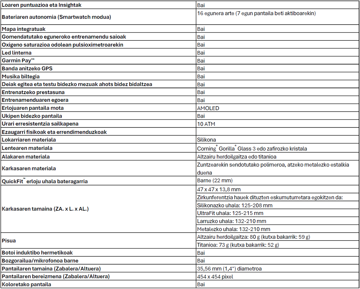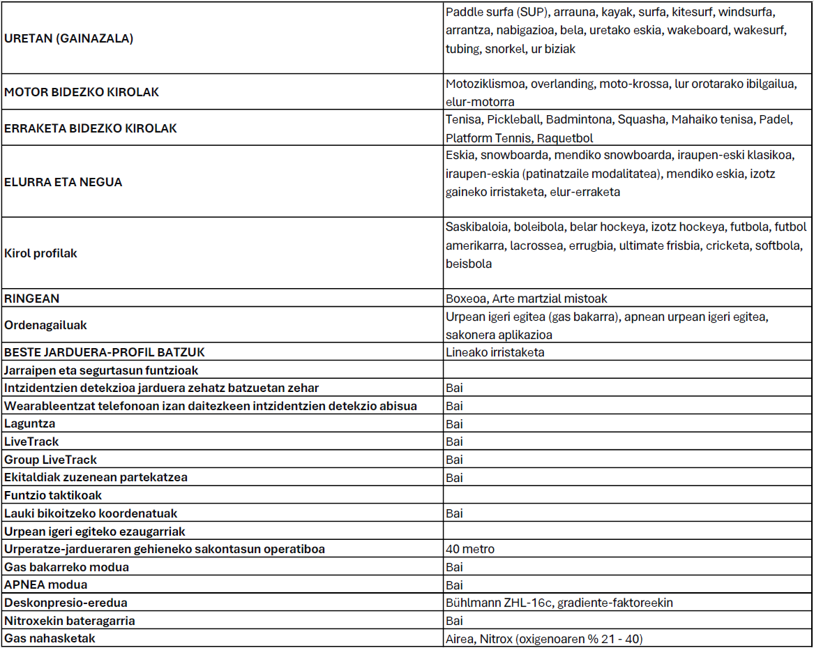 MUGARIK GABEKOA Mugak gainditu nahi dituzten abenturazaleentzat eta kirolari profesionalentzat bikaina da, eta GPSa duen premium kirol anitzeko smartwatch hau ahalik eta errendimendu handiena lortzeko diseinatuta dago. Indar-entrenamenduko funtzio aurreratuak ditu, ura jasaten du, ahots-funtzioetarako bozgorailu bat eta barne-mikrofono bat ditu eta LED linterna integratu bat du, baita askoz gehiago ere.