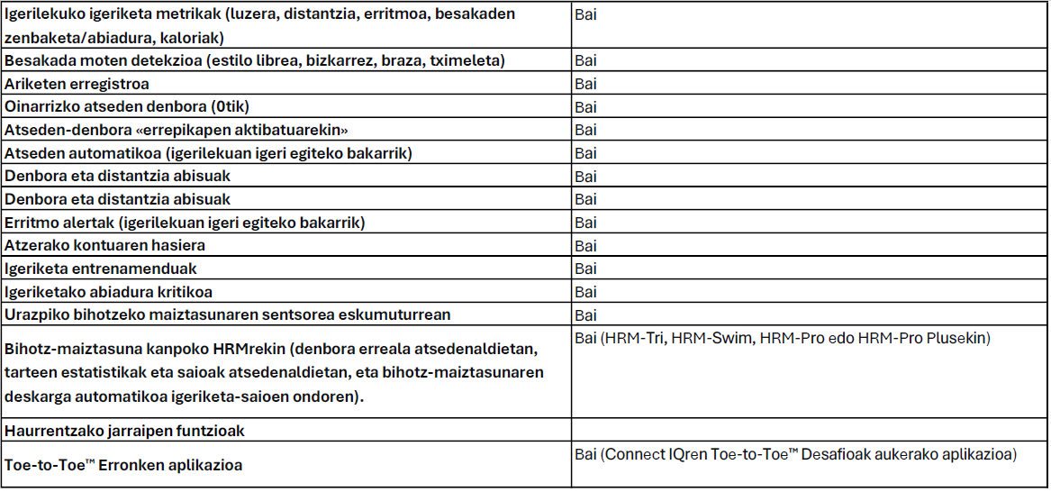 KIROL ANITZEKO TRANTSIZIO AUTOMATIKOA Funtzio honek igeriketaren, txirrindularitzaren eta lasterketaren arteko aldaketak detektatzen ditu. Horrela, lehiaketan zentratu zaitezke, erlojuak egingo baitu lan guztia.