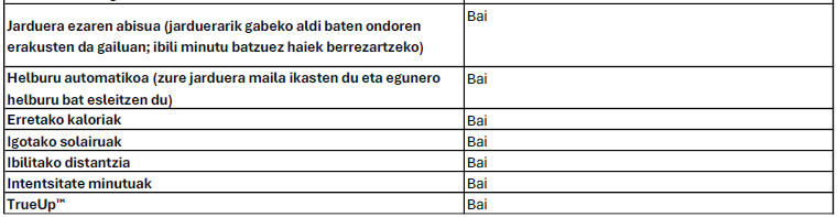 Erlojuak etengabe neurtzen du zure bihotz-maiztasuna1 jardueren bitartean zure esfortzuaren intentsitatea zehazte aldera.